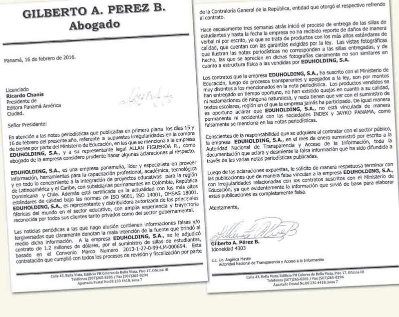 Los que se defendieron del contenido del reportaje fueron los representantes de la empresa Eduholding, quienes, por medio de su abogado, Gilberto Pérez, afirmaron que los contratos que han suscrito con el Meduca "son por montos muy distintos a los mencionados en la nota periodística".
