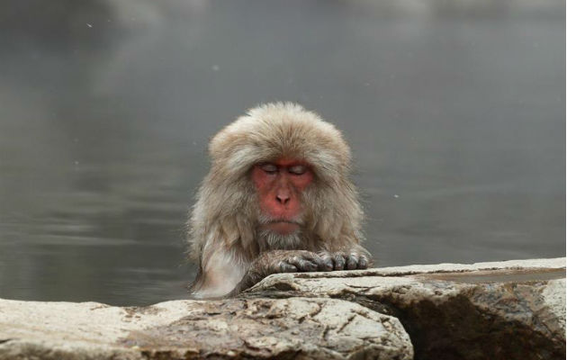 Un mono de nieve disfrutando de un largo baño de aguas termales. Foto: EFE