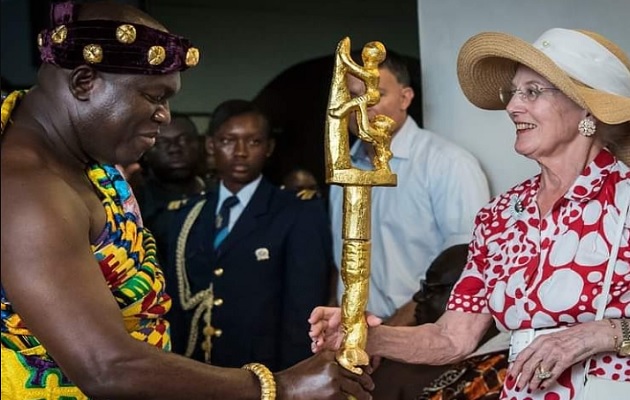 El rey Odeneho Kwafo-Akoto III y la reina Margarita de Dinamarca. Foto: Redes Sociales