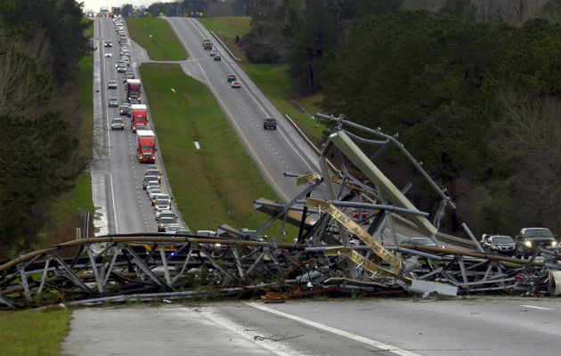 El responsable agregó que un número indeterminado de heridos graves han sido trasladados a hospitales. De acuerdo con el Servicio Nacional Meteorológico, una decena de tornados tocaron en la tarde del domingo los estados de Alabama y Georgia.
