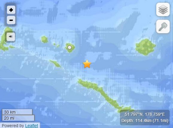 El temblor se produjo a las 11.53 hora local (20.53 GMT) y su epicentro se localizó 24 kilómetros al sureste de la remota isla de Sitkin y a 114 kilómetros de profundidad.