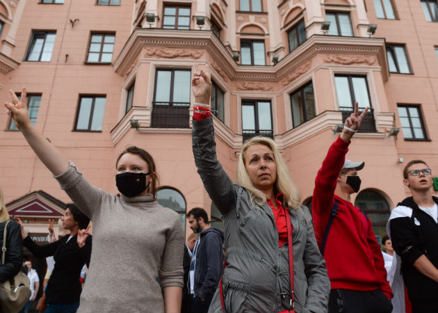 Bielorrusos protestan contra la brutal represión policial en las protestas opositoras. Fotos: EFE.