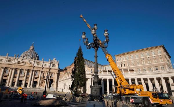 El árbol de Navidad que lucirá estas fiestas en la plaza de San Pedro en el Vaticano se encuentra ya frente a la Basílica tras comenzar su montaje, aunque su inauguración y encendido serán el 11 de noviembre, dando comienzo a una de las navidades más atípicas por la pandemia de coronavirus.
