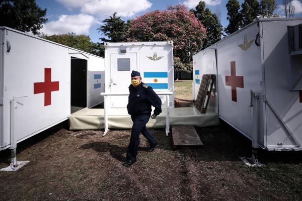 Un soldado recorre un hospital móvil instalado por el ejército argentino para asistir a enfermos del Covid-19 en la Ciudad de Buenos Aires. FOTO/EFE