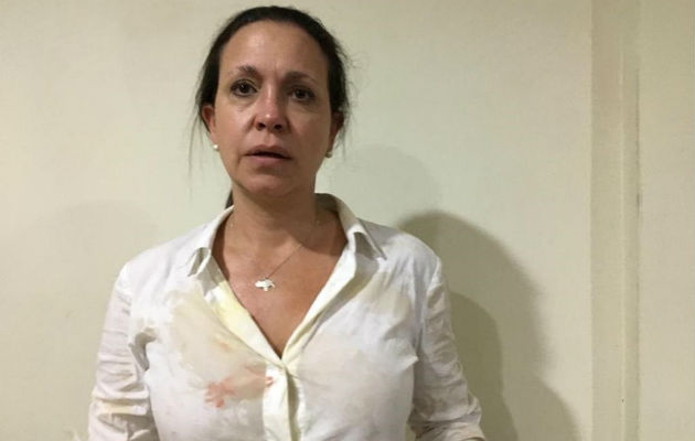 El equipo de prensa de la exdiputada divulgó en las redes sociales fotografías y vídeos que muestran el momento del incidente y a la opositora tras el ataque, vistiendo una ropa manchada con lo que parece sangre.