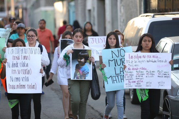Manifestantes marchan para protestar por el asesinato de Fátima. FOTO/AP