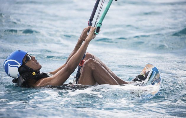 Las imágenes muestran un Obama relajado, bromista y en plena forma mientras aprende a hacer "kitesurf" con su amigo Richard Branson.