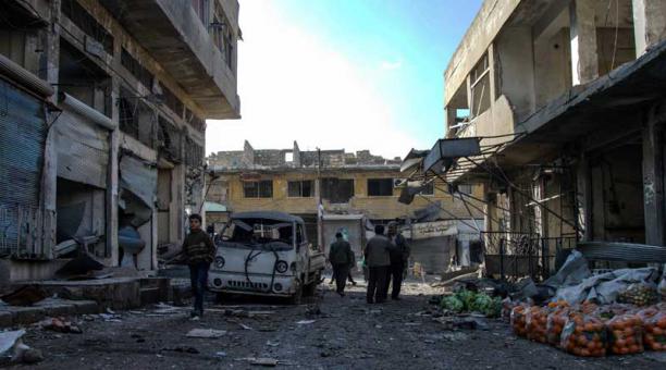 Al menos 8 civiles murieron este jueves por bombardeos de aviones no identificados en el sur de la provincia norteña siria de Alepo, en medio de una ofensiva gubernamental para asegurar la carretera que une esta región con Damasco, según el Observatorio Sirio de Derechos Humanos. Los fallecidos son miembros de dos familias: hay dos hermanos, la hija de uno de ellos, una pariente suya y su vástago; y por otro lado, un hombre y sus dos nietos menores de edad. Esas personas perdieron la vida por ataques aéreos en la población de Yazraya, que fue bombardeada junto a otras partes del sur de Alepo como Al Uasata, Tel Mamu, Mariuda, Um al Karamil, Tel Fajar y Tel Alush, que también fuero blanco del fuego de artillería. VEA TAMBIÉN: Al menos 23 muertos en bombardeo Por esa zona, las fuerzas gubernamentales sirias tratan de avanzar por la carretera que une Damasco y Alepo para asegurarla. En las últimas 48 horas, los efectivos leales al presidente sirio, Bachar al Asad, se han enfrentando al Organismo de Liberación del Levante, la alianza de la exfilial de Al Qaeda y otras facciones, en áreas próximas y han logrado progresar hasta situarse a 20 kilómetros de Saraqueb, en la vecina provincia de Idleb. Saraqueb se halla junto a la vía que conecta Alepo con Damasco y es una de las localidades más importante del este de Idleb. VEA TAMBIÉN: Bombardeos desangran el este de Alepo, con decenas de muertos