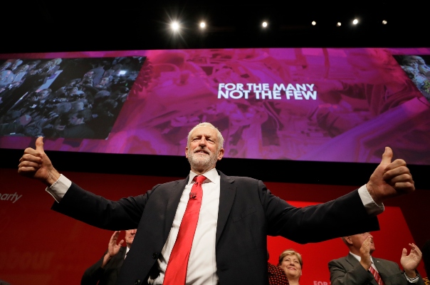 Jeremy Corbyn, líder del opositor Partido Laborista de Gran Bretaña da el visto bueno después de dirigirse a los miembros del partido durante la Conferencia del Partido Laborista. FOTO/AP