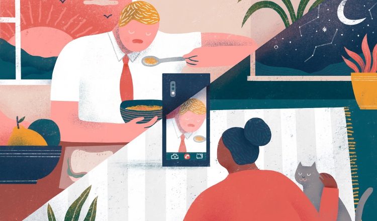 Para superar la distancia entre ellos, se escriben cartas a mano una vez a la semana y se conectan a través de FaceTime desde sus departamentos mientras terminan sus pendientes de trabajo, dejando la llamada durante horas y hablando de manera intermitente. Transcurridas unas semanas, alguno toma un avión para pasar el fin de semana juntos.