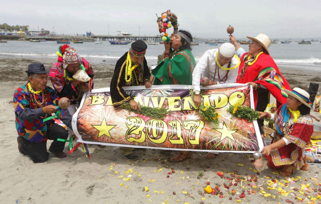 A orillas del mar de la Costa Verde de Lima, un grupo de brujos y chamanes peruanos realizó un ritual esotérico, en el que, entre otros temas, se pronosticó que durante 2017 se darán nuevos conflictos en Europa y avances en la reclamación marítima de Bolivia. Durante el ritual se mostraron las fotografías de políticos como el presidente boliviano Evo Morales, el peruano Pedro Pablo Kuczynski y el venezolano Nicolás Maduro, entre otros. Ocuparon especial atención las imágenes del presidente de Rusia, Vladímir Putin, y del presidente electo de Estados Unidos, Donald Trump, quienes, según los chamanes, necesitarán "calma" durante sus gestiones. "Se están disputando el poder bélico. Él (Putín) ha declarado que su país, Rusia, está más armado que Estados Unidos", detalló Juan Osco, conocido también como el Chamán de los Andes. Osco, quien es natural de la región sureña de Ayacucho, aseguró que él ya pronosticó en el pasado "el doble triunfo" que obtuvo Barack Obama en Estados Unidos. El chamán también manifestó su "tristeza" porque, según dijo, los conflictos continuarán en Europa durante 2017 y consideró que cerca de España se podrían cometer "algunos atentados". Además, también aseguró que el jefe del Gobierno español, Mariano Rajoy, se verá en medio de "conflictos", pues "hay enemigos a su lado que no lo quieren ver triunfar". Osco también consideró cada vez más próxima la opción de una "salida al mar de Bolivia", algo que según el chamán "se vería beneficiado por leyes, documentos y papeles" en la reclamación que ha hecho por este tema contra Chile ante la Corte Internacional de Justicia de La Haya (CIJ). Ello permitiría que Evo Morales se vea "favorecido políticamente", mientras que Michelle Bachelet tendrá que "tener cuidado, con mucha tensión por parte de Bolivia", agregó. "Nosotros queremos que salga al mar Bolivia, por ello vamos a hacer un ritual, vamos a llevar un poco de agua del mar y echarlo en el Palacio de Gobierno de Bolivia, en La Paz", adelantó. Al referirse a los desastres naturales, Osco indicó que visualizaba "sequías, tornados o tsunamis", pues la "madre tierra está molesta, está sangrando su corazón, está herida". Sobre la situación en Perú, el chamán auguró que el presidente Kuczynski sufrirá algunos problemas de salud y "tendrá que ser un poco más fuerte y decidido con el pueblo peruano". Consideró que al gobernante, que ocupará el cargo hasta julio del 2021, deben "dejarlo gobernar y él se va a favorecer". Según explicó el chamán, para poder visualizar "el pasado, presente o futuro" hace un ritual nocturno con ayahuasca, en el que también bebe un preparado en base al cactus San Pedro, ambos productos altamente alucinógenos. El ayahuasca es considerado un ritual sanador en la cosmovisión de muchos pueblos amazónicos del Perú y se le atribuye poderes curativos para problemas relacionados con la mente. "Tomamos el San Pedro y el ayahuasca y visualizamos lo que va a pasar", contó Osco, quien además precisó que el poder de visualizar el futuro "solo lo tienen maestros que están en un nivel superior". Los rituales frente al mar buscan "tranquilizar y que haya paz en las mentes", señaló Osco antes de agregar que para atraer la buena suerte durante este 2017 solo hace falta contar con "seis frutas de color amarillo", así como "pasarse un membrillo por todo el cuerpo", y luego "soplarlo". Esto hará que "cambie tu vida", aseguró.