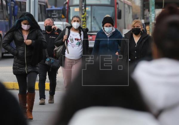 Personas caminan protegidas con mascarillas por una calle en Santiago de Chile. Foto: EFE