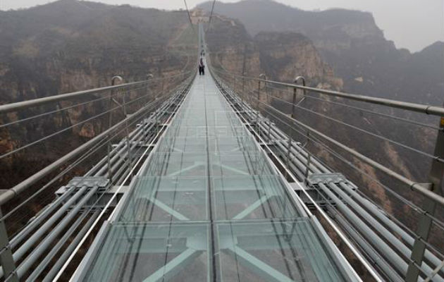El puente, ha sido construido con 150 piezas de vidrio laminado endurecido y 3,000 toneladas de acero.