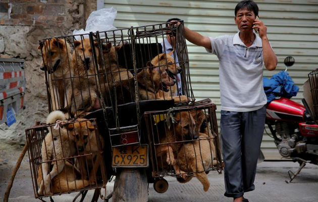 Pese a que el año pasado entró en vigor una ley que prohibía la venta de carne de perro en restaurantes, mercados y otros comercios del país, la cita sigue celebrándose en el mercado Dashichang de Yulin, donde se amontonan las jaulas con perros y gatos para ser sacrificados.