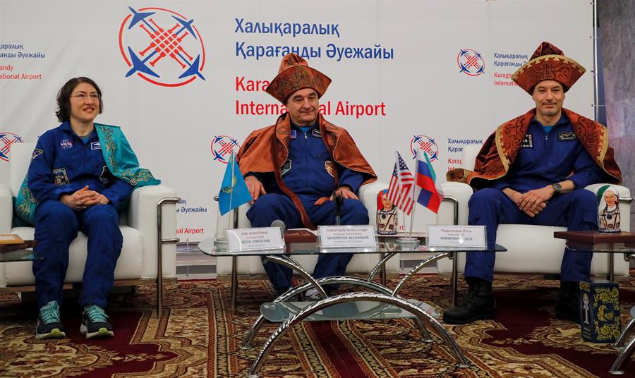 Astronautas, Christina Koch, Alexander Skvortsov y Luca Parmitano. FOTO/EFE