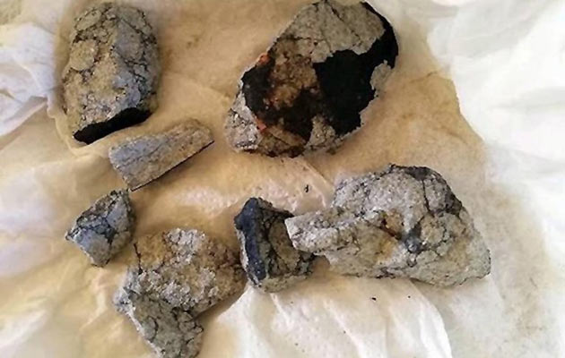 Algunos hasta han llegado a llevarse a la boca los fragmentos de roca cósmica, que según los estudios podría ser un meteorito pétreo o litito, del subtipo acondrita, que representa el 7% de los hallazgos de este tipo.