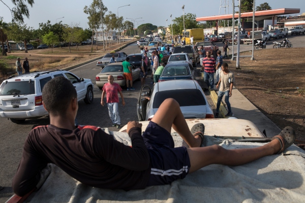 Los venezolanos forman largas filas para tratar de compra combustible. FOTO/AP