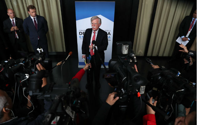 El asesor de Seguridad Nacional de la Casa Blanca, John Bolton, en rueda de prensa en Lima. Foto: EFE.