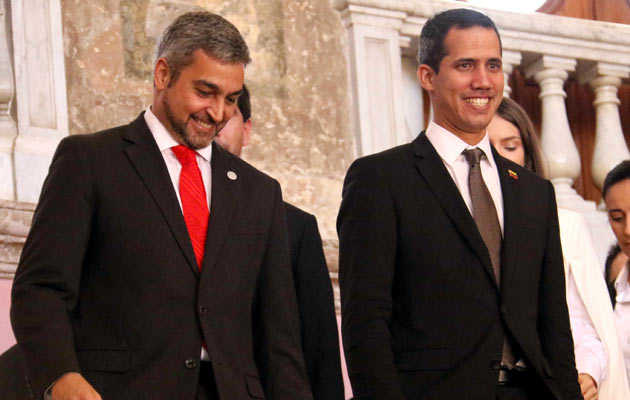 Juan Guaidó, es recibido con honores de Jefe de Estado por Abdo Benítez en Paraguay. FOTO/EFE