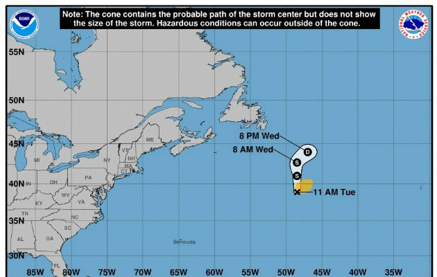 La tormenta mantendrá su trayectoria con dirección noreste hasta que se disipe en las próximas horas en el lejano Atlántico Norte.