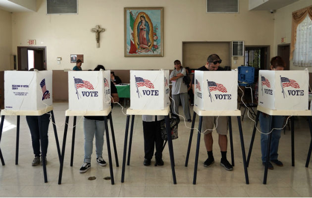 Ciudadanos votan en la iglesia Assumption Roman Catholic Church, en Los Ángeles. Foto: EFE.