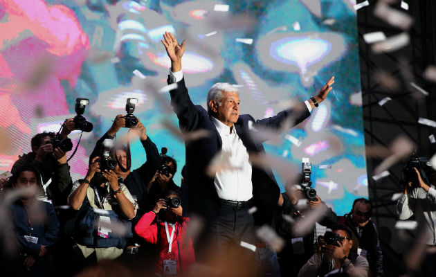 Andrés Manuel López Obrador, celebra su victoria junto a sus simpatizantes. FOTO/EFE