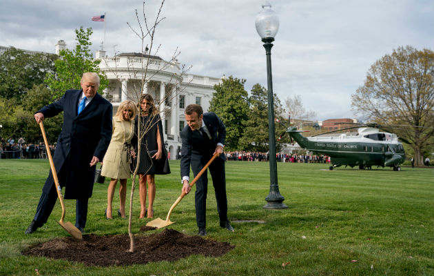 El roble, regalo de Francia, que el presidente de Estados Unidos, Donald Trump, y su homólogo francés, Emmanuel Macron, plantaron en el jardín sur de la Casa Blanca ha desaparecido, según muestran fotografías tomadas estos últimos días y reproducidas por medios locales. El misterio, sobre el que la Casa Blanca no se ha pronunciado, gira alrededor de unas fotografías tomadas este fin de semana y en las que se muestra un trozo de césped amarillento en el mismo lugar donde esta semana Trump y Macron protagonizaron uno de los momentos más simpáticos de su encuentro. VEA TAMBIÉN Exponen los aviones cazahuracanes El árbol fue plantado en el jardín de la Casa Blanca el lunes en el primer día de la visita de Macron, y su esposa, Brigitte. El roble, un pequeño esqueje, simboliza la longeva alianza entre Estados Unidos y Francia, puesto que procede del bosque francés de Belleau, lugar de la batalla homónima del verano de 1918 durante la I Guerra Mundial, en la que murieron casi 2.000 soldados estadounidenses. La imagen de Trump y Macron, vestidos de traje y cavando un hoyo para plantar el árbol, mientras Brigitte y Melania les miran desde atrás, se ha vuelto muy popular en las redes sociales, donde los usuarios la han comparado con las psicodélicas portadas de la banda británica Pink Floyd. VEA TAMBIÉN Campesinos de Nicaragua viajan a Managua al grito de "¡Que se vaya Daniel!" La desaparición del árbol ha provocado todo tipo de especulaciones en Estados Unidos y Francia, donde la emisora francesa Franceinfo cita al portal especializado en jardinería Gerbaud.com y explica que el momento idóneo para plantar el roble es otoño, por lo que quizás el árbol vuelva entonces a la Casa Blanca. El viaje del matrimonio Macron, que dejó Washington el miércoles, supuso la primera visita de Estado de la Presidencia Trump, al año y tres meses de su llegada al poder.