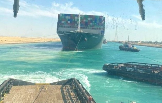 La navegación quedó suspendida después de que el barco, de bandera panameña y propiedad de la naviera taiwanesa Evergreen, con 18.300 contenedores a bordo, quedó encallado en medio de fuertes vientos y una tormenta de arena que azotaba Egipto.