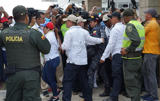 Varios integrantes de la Policía Nacional Bolivariana (PNB) de Venezuela que cortaban el paso de la ayuda humanitaria por el Puente Internacional Simón Bolívar desertaron este sábado y cruzaron al lado colombiano de la frontera.