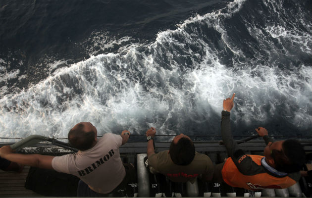 Los rescatistas exploran el horizonte durante una operación de búsqueda de las víctimas del accidente aéreo de Lion Air en Indonesia. AP