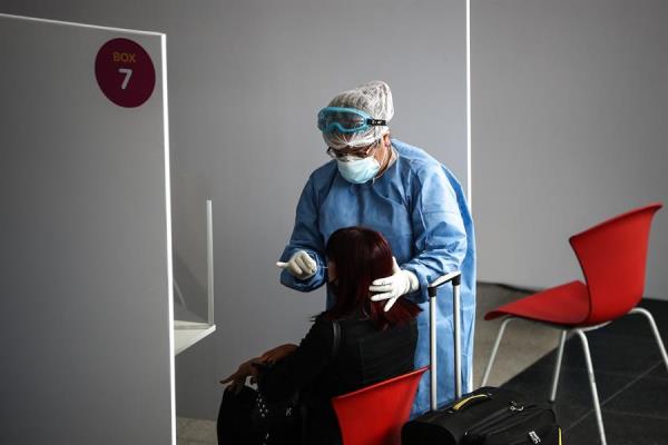 Personal sanitario realiza una prueba de coronavirus a una viajera en Buenos Aires (Argentina). EFE