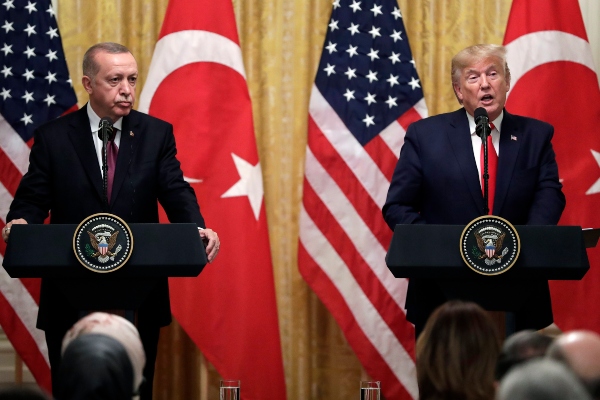 El presidente Donald Trump a tendió al presidente turco Recep Tayyip Erdogan. FOTO/AP