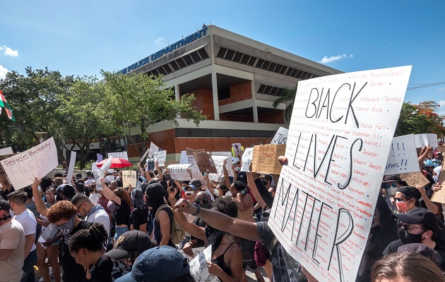 Dos millares de personas protestaron en Miami por asesinato del afroamericano George Floyd