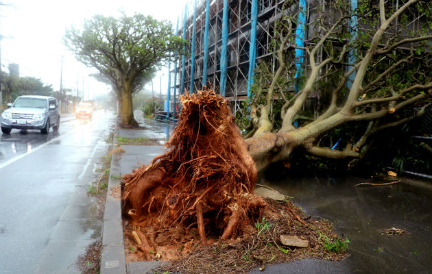 Vista de árboles caídos, debido a los fuertes vientos generados por el tifón Trami. EFE/ EPA