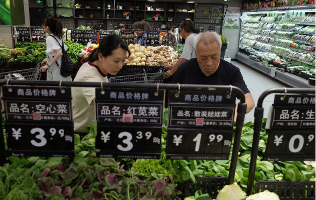 Compradores seleccionan verduras en un supermercado en Pekín (China). Foto: EFE.
