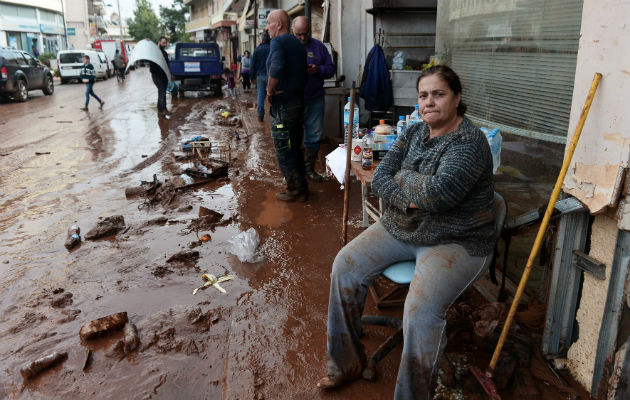 En la zona periférica de Argólida algunos ríos se desbordaron y anegaron carreteras circundantes, que acabaron convirtiéndose en torrentes y arrastraron algunos coches.