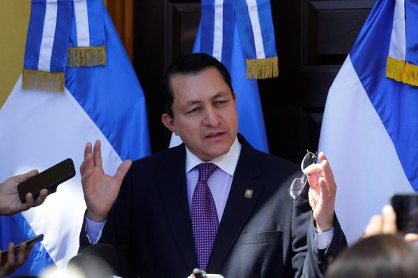 El presidente de la Asamblea Legislativa de El Salvador, Mario Ponce, ofrece una rueda de prensa este lunes en la capital del país. FOTO/EFE