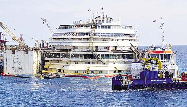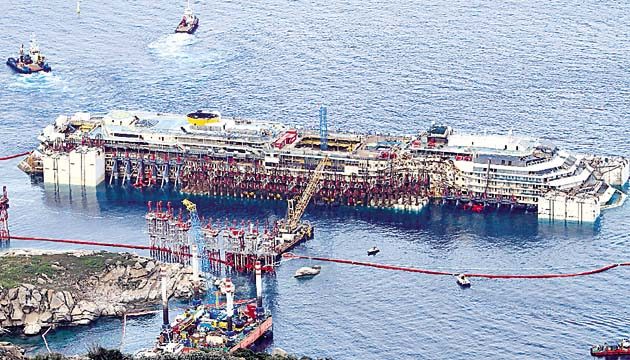 Las operaciones comenzaron durante la madrugada de ayer y cinco horas más tarde, el crucero volvió a estar a flote al separarse de la estructura submarina a la que permanecía sujeto desde que fue devuelto a su posición vertical, en septiembre de 2013.