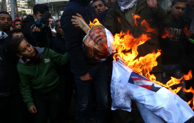 En esta última y en la ciudad de Nablus los manifestantes quemaron banderas norteamericanas y fotos de Trump.