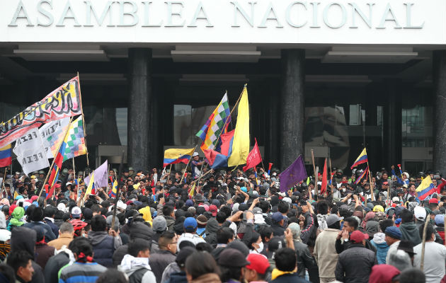 La sede del Parlamento ecuatoriano fue tomada por el lapso de aproximadamente una hora por manifestantes de sectores indígenas, que desde primera hora se concentraron en un parque de la capital, Quito, en la víspera de una gran movilización prevista para el miércoles contra la reforma económica del Ejecutivo.