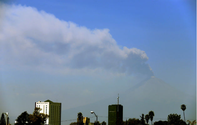 Vista general de una nueva exhalación del volcán Popocatépetl tomada este miércoles desde la ciudad de Puebla (México). Foto: EFE.