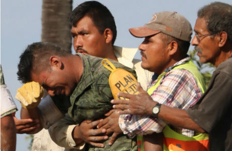 El fotógrafo Marco Gil Vela se reencontró con el soldado Martín Moctezuma Luis Hernández, quien el 19 de septiembre pasado estalló en llanto al hallar los cadáveres de la esposa e hija del primero entre los escombros. Gil Vela, quien el fin de semana pidió ayuda a través de las redes sociales para hallar al militar, se fundió en un abrazo con Hernández, después de que la imagen del soldado llorando se viralizara. Durante el emotivo encuentro en la tarde del martes, propiciado por el Ejército en Jojutla, el municipio más golpeado del estado de Morelos por el terremoto del 19 de septiembre, Luis Hernández dijo que sintió "una gran impotencia" al ver los restos de Samara y la pequeña Sara Sofía, de un año, luego de seis horas de arduo trabajo entre los escombros. "Yo traté de sacarlas con vida", afirmó el soldado, quien agradeció a Gil Vela el reconocimiento que hizo al trabajo del Ejército porque, apuntó, "no es fácil ser militar" y muchas veces se les critica. "Soy padre de familia, tengo una nena y no me gustaría estar ni un segundo, ni un minuto, en los zapatos del padre", señaló Luis Hernández, al destacar que los militares también son "sensibles" al dolor. El fotógrafo dijo al soldado que a partir de ahora tenía "dos ángeles" que le estaban "cuidando allá arriba", así como a todos los militares. Gil Vela dijo a Efe el lunes que el militar del 108 Batallón de Infantería había llorado desconsoladamente al verlas sin vida, aunque no eran sus familiares. "Estaba en shock", contó este fotógrafo de bodas que el fin de semana pasado publicó en su cuenta de Facebook una imagen de su tío, Salvador Kellerman, que capta el momento en que el soldado "se desmorona", porque "sentía mucha impotencia, mucha rabia" por no haber llegado a tiempo. Los soldados "no son fríos, son humanos, se doblan, yo lo vi, ahí está la foto", apuntó Gil Vela. Madre e hija estaban en la casa de los padres de Samara en la comunidad de Chisco, en el municipio de Jojutla, cuando el sismo de magnitud 7,1 en la escala de Richter - que hasta ahora ha dejado 337 muertos- hizo que colapsara.