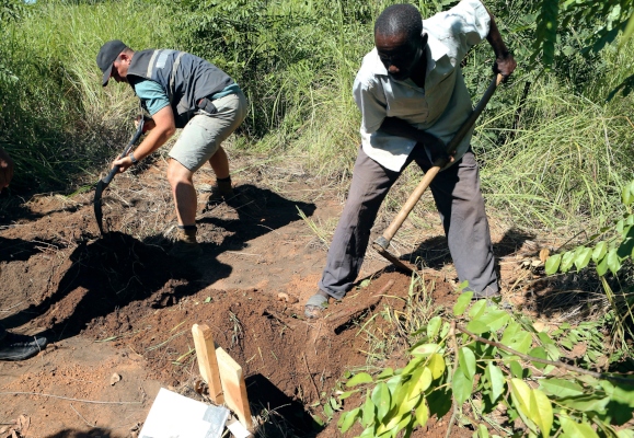 Stephen Fonseca busca cuerpos en un campo de maíz en ruinas en Magaru, Mozambique. FOTO/AP