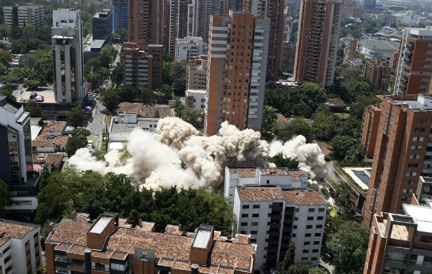 El edificio Mónaco, que fue residencia y cuartel del jefe del cartel de Medellín, Pablo Escobar, fue reducido a escombros en solo tres segundos este viernes para construir en su lugar un parque en memoria de las víctimas del narcoterrorismo en Colombia.
