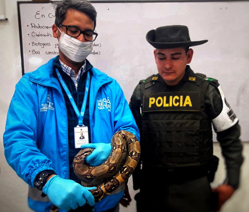 El pasado 4 de marzo, las autoridades rescataron también otra boa constrictor, de 1,6 metros de longitud, que fue abandonada tras parir en el céntrico Parque Simón Bolívar de Bogotá.