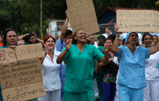 Las cercanías de los principales hospitales de la capital venezolana, así otros ubicados en los estados Lara, Mérida, Trujillo, Portuguesa (oeste), Falcón (noroeste), Aragua y Carabobo (centro) fueron escenario de manifestaciones en las que los enfermeros pidieron salarios que les alcancen, al menos, para comer.