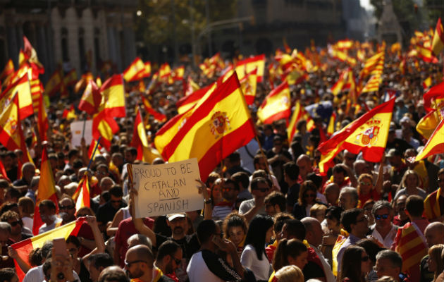 La vicepresidenta del Gobierno español, Soraya Sáenz de Santamaría, dijo que estarán listos para actuar si los líderes secesionistas catalanes siguen adelante y declaran la independencia de la región el martes como prometieron. “Si declaran la independencia, habrá decisiones para restaurar la ley y la democracia”, declaró Sáenz de Santamaría en una entrevista con la radio COPE. El presidente del gobierno de Cataluña, Carles Puigdemont, comparecerá en el parlamento regional el martes por la tarde para debatir la situación política actual. Políticos independentistas dijeron que se realizará una declaración de independencia durante la sesión, aunque algunos legisladores de la coalición de gobierno apuntaron que la medida sería “simbólica”. VEA TAMBIÉN Miles marchan en rechazo a independencia de Cataluña Sáenz de Santamaría pidió además a los miembros del gobierno catalán que tienen “respeto por la democracia y respeto a la libertad, que no se tiren al precipicio”. La vicepresidenta del ejecutivo central también consideró que los independentistas están "divididos" y "asustados". Agregó que la manifestación de ayer en Barcelona contra la independencia fue "un punto de inflexión" en el que la sociedad civil catalana contraria al proyecto soberanista fue arropada por muchos ciudadanos de toda España que se desplazaron a la capital catalana. Cientos de miles de personas salieron ayer a las calles de la capital catalana a favor de la unidad de España, en la primera gran manifestación pública de los no independentistas. Asimismo, la vicepresidenta aseguró que el Gobierno de Mariano Rajoy está preparado para hacer frente a cualquier decisión que anuncie mañana Puigdemont ante el Parlamento regional de Cataluña. El presidente catalán tiene previsto comparecer ante la Cámara para informar sobre la situación política en Cataluña tras el referéndum ilegal secesionista del 1 de octubre, con la posibilidad de que realice una declaración unilateral de independencia, aunque no está anunciada oficialmente. "Hay que situarse en todos los escenarios, contemplarlos todos, tenerlos todos trabajados", recalcó la vicepresidenta, quien puso de manifiesto la división existente entre los dirigentes políticos catalanes. "División hay, preocupación hay, asustados están, pero ya hemos visto mucho fanatismo y tenemos que estar preparados para todo", insistió antes de hacer un llamamiento a la "gente sensata" de la Generalitat (Gobierno catalán) "para que no se tiren al precipicio". VEA TAMBIÉN Españoles, a favor de una solución dialogada en disputa por Cataluña Respecto a las medidas futuras que el Gobierno español podría tomar para garantizar la unidad de España, en caso de una declaración unilateral de independencia en Cataluña, se limitó a señalar que el Gobierno tomaría en ese caso todas las medidas que sean necesarias. "Todo lo que hagamos tiene que ser eficaz y efectivo y provocar el menor daño posible. Si al otro lado tenemos un fanático, a nosotros nos corresponde aportar dosis dobles de cordura y sensatez y un criterio firme y meditado", dijo. "Hace falta mucho criterio político, mucho consenso con el resto de grupos y medirlo en criterios de eficacia porque las decisiones que adoptemos tendrían que ser decisiones que puedan implantarse, que tengan efectos y causen el menor daño posible", añadió. Sáenz de Santamaría recalcó la conveniencia de consenso entre los partidos constitucionalistas ante las decisiones que hubiera que adoptar, pero dejó claro que si Puigdemont declara la independencia, "habrá que tomar medidas, y esa decisión será del Gobierno de España".