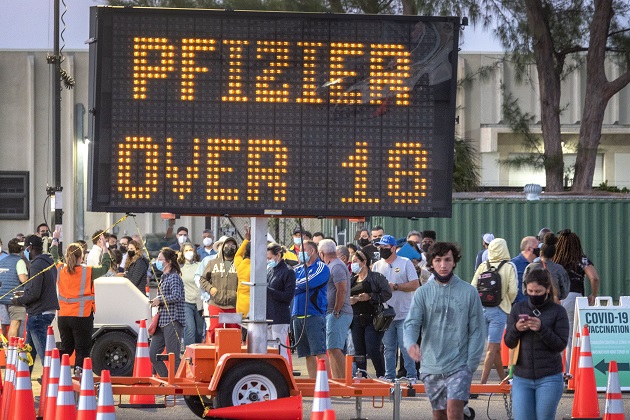 Un tercio de los estadounidenses, y el 40% de los mayores de 18 años del país, han recibido ya al menos la primera dosis de la vacuna; mientras que el 23.2% de los adultos del país ya están completamente inmunizados, de acuerdo con los CDC.