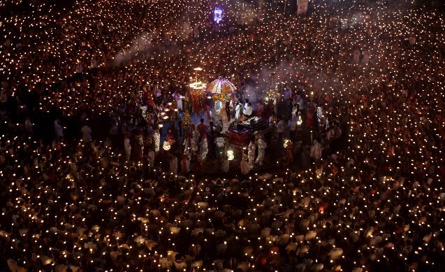 La avalancha sucedió en el momento en que miles de personas se habían congregado para conmemorar el último día de una serie de celebraciones en honor a la diosa Durga.