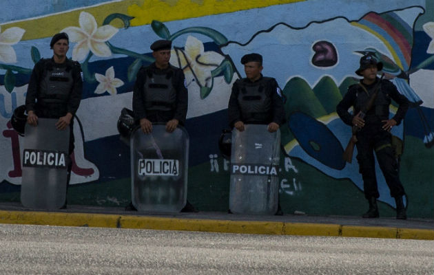 Antimotines de la Policía Nacional apostados ante protestas en Managua. Foto: EFE.
